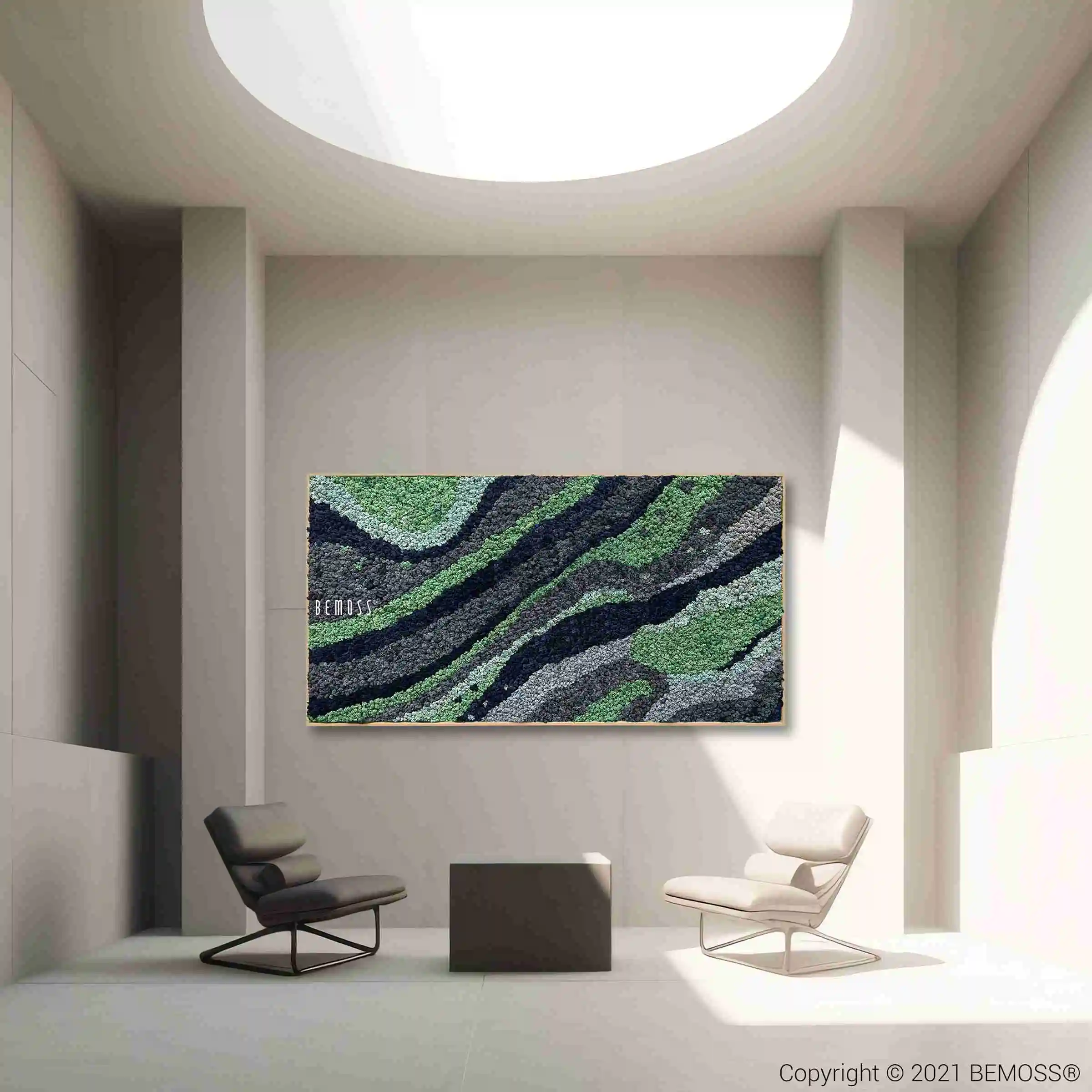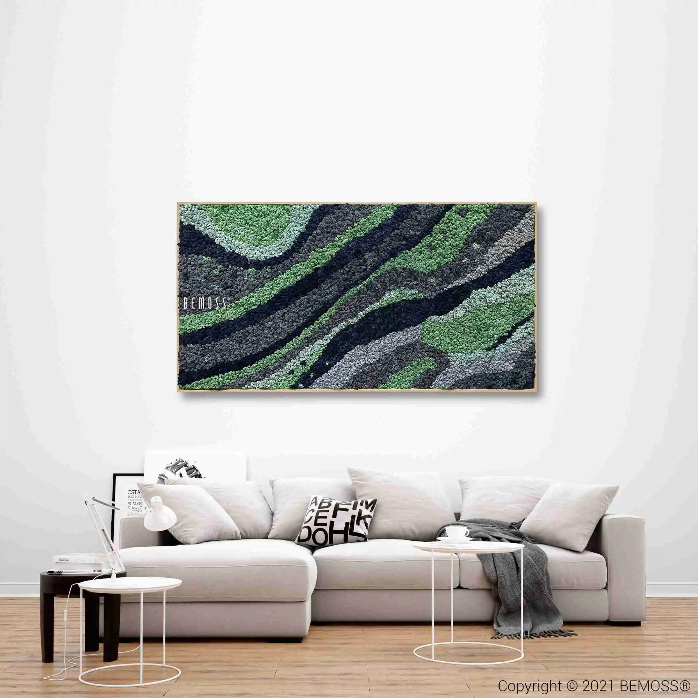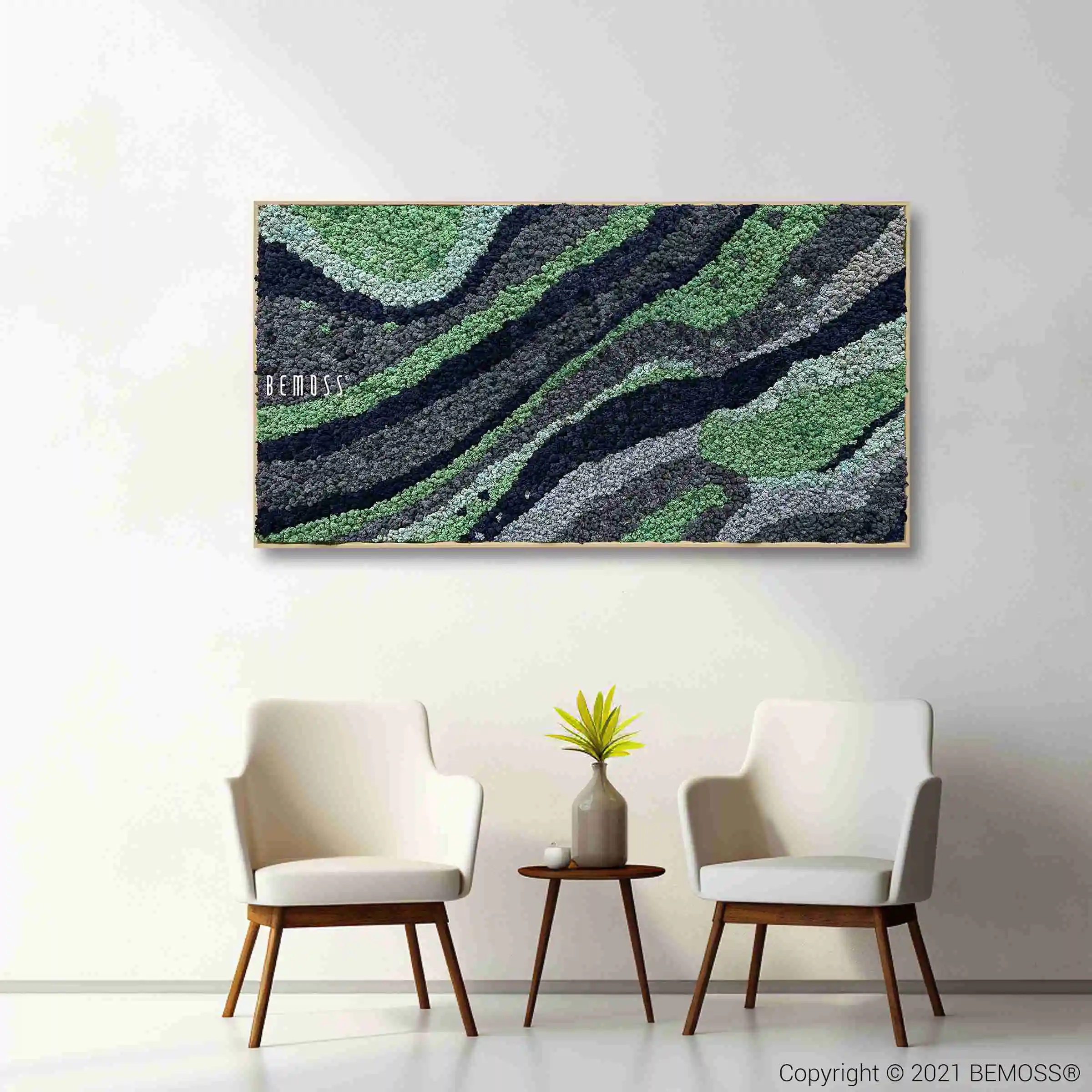 Wir bieten Standardgrößen an, aber das Bild kann auch maßgefertigt werden, um Ihren Anforderungen gerecht zu werden. Es stehen Ihnen auch verschiedene Rahmenoptionen zur Verfügung, die sich Ihrem Stil anpassen. Dieses Moosbild ist nicht nur eine visuelle, sondern auch eine praktische Ergänzung, die jede Wand und jedes Zimmer belebt und ein Stück Natur in Ihr Interieur bringt.