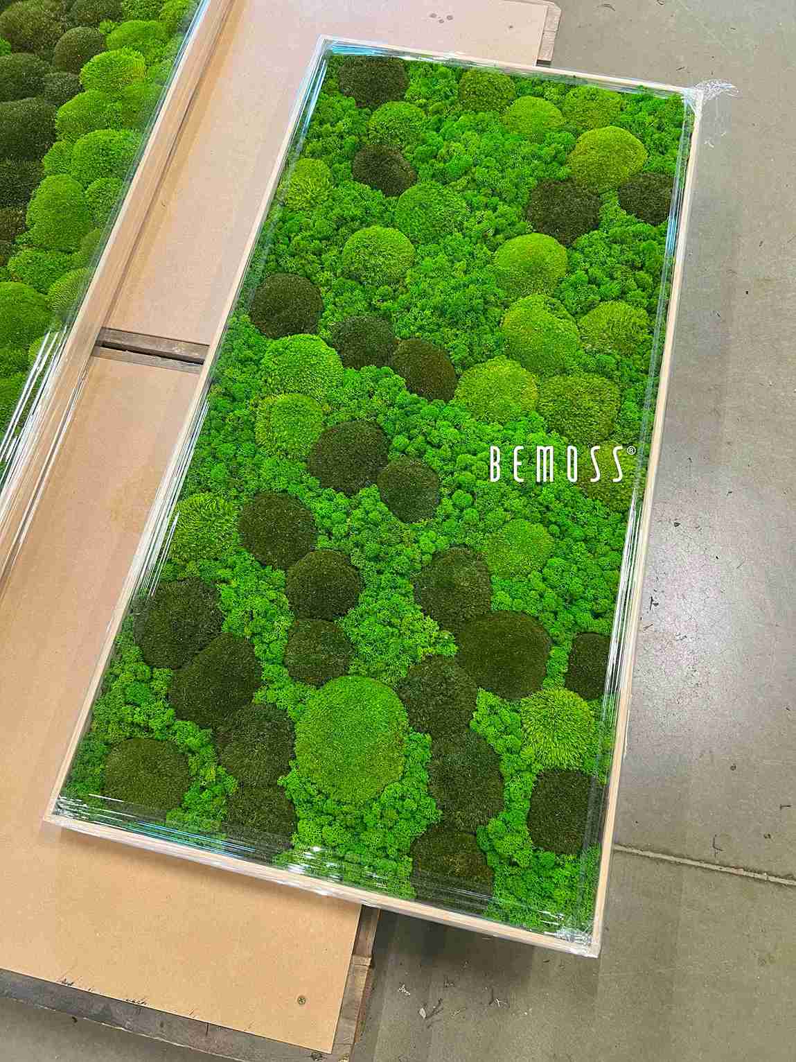 Alle Produkte von BEMOSS® werden handgefertigt in Deutschland. Moosbilder und Mooswände bestehen aus 100 % natürlichem Material, das durch ein spezielles Verfahren in einer Stabilisierungslösung konserviert wurde. Dadurch sind alle Moosbilder, Mooswände und stabilisierten Pflanzen pflegefrei – sie benötigen weder Tageslicht noch Wasser zum Erhalt. Die Lebensdauer der Moosbilder und -wände von BEMOSS® beträgt mehrere Jahre. Um diese möglichst lange zu bewahren, ist Folgendes entscheidend: