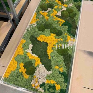 Moosbild BEMOSS® ORTHO YELLOW ist das perfekte Beispiel für die Verbindung von Natur und Kunst. Die vielfältigen Texturen und lebendigen Gelb-, Grün- und Weißtöne schaffen eine dynamische Komposition, die an eine blühende Wiese im Sonnenlicht erinnert. Die Kombination aus kugelförmigem Moos, flachem Moos und zarten Details verleiht dem Bild Tiefe und einen einzigartigen Charakter.
