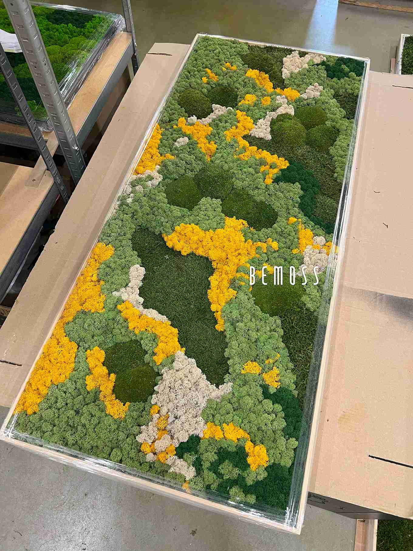 Es werden standardisierte Größen hergestellt, aber selbstverständlich besteht auch die Möglichkeit, ein Bild in beliebiger Größe nach Ihren Wünschen anzufertigen. Schreiben Sie uns einfach an bemoss@bemoss.eu.