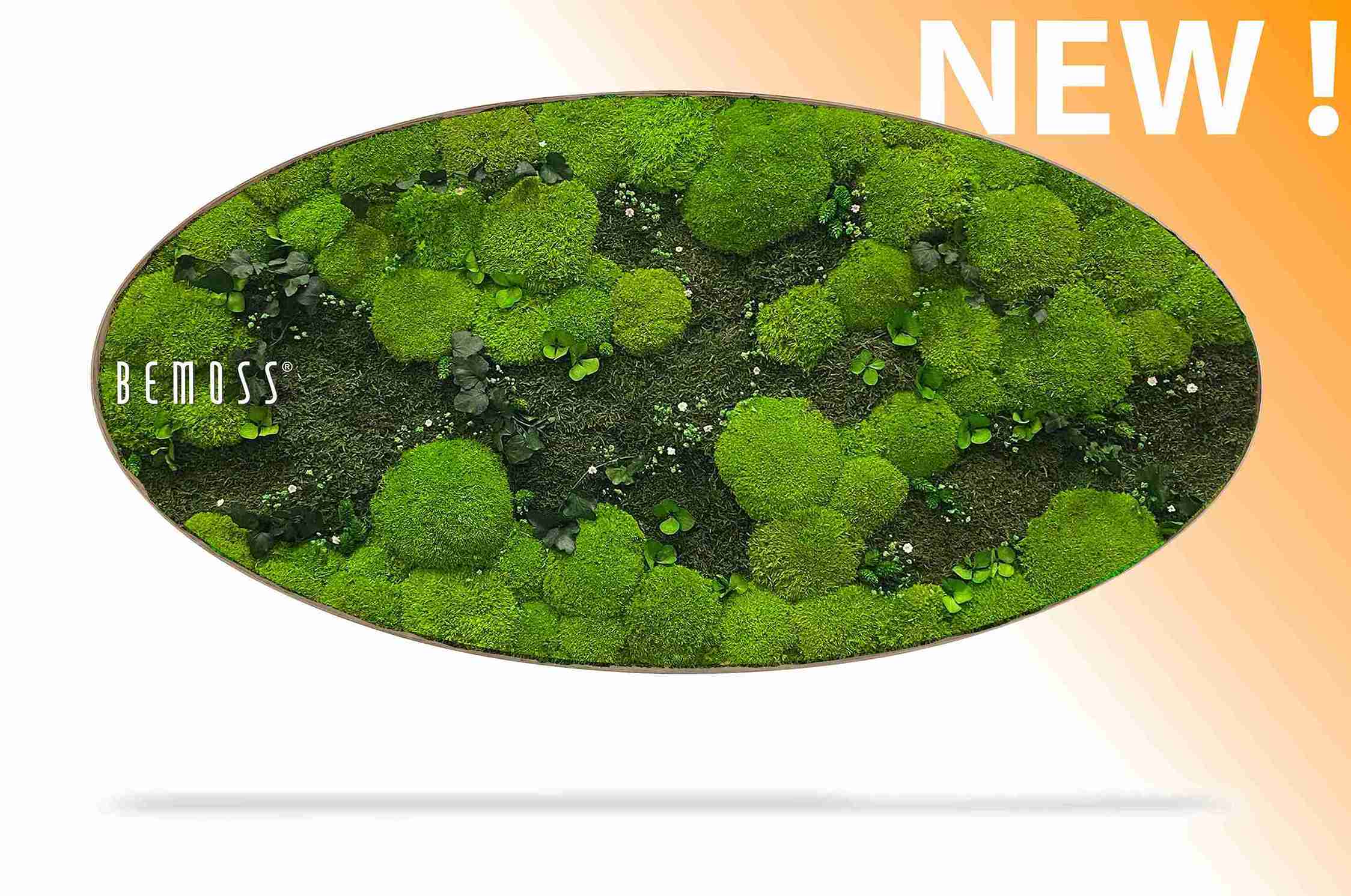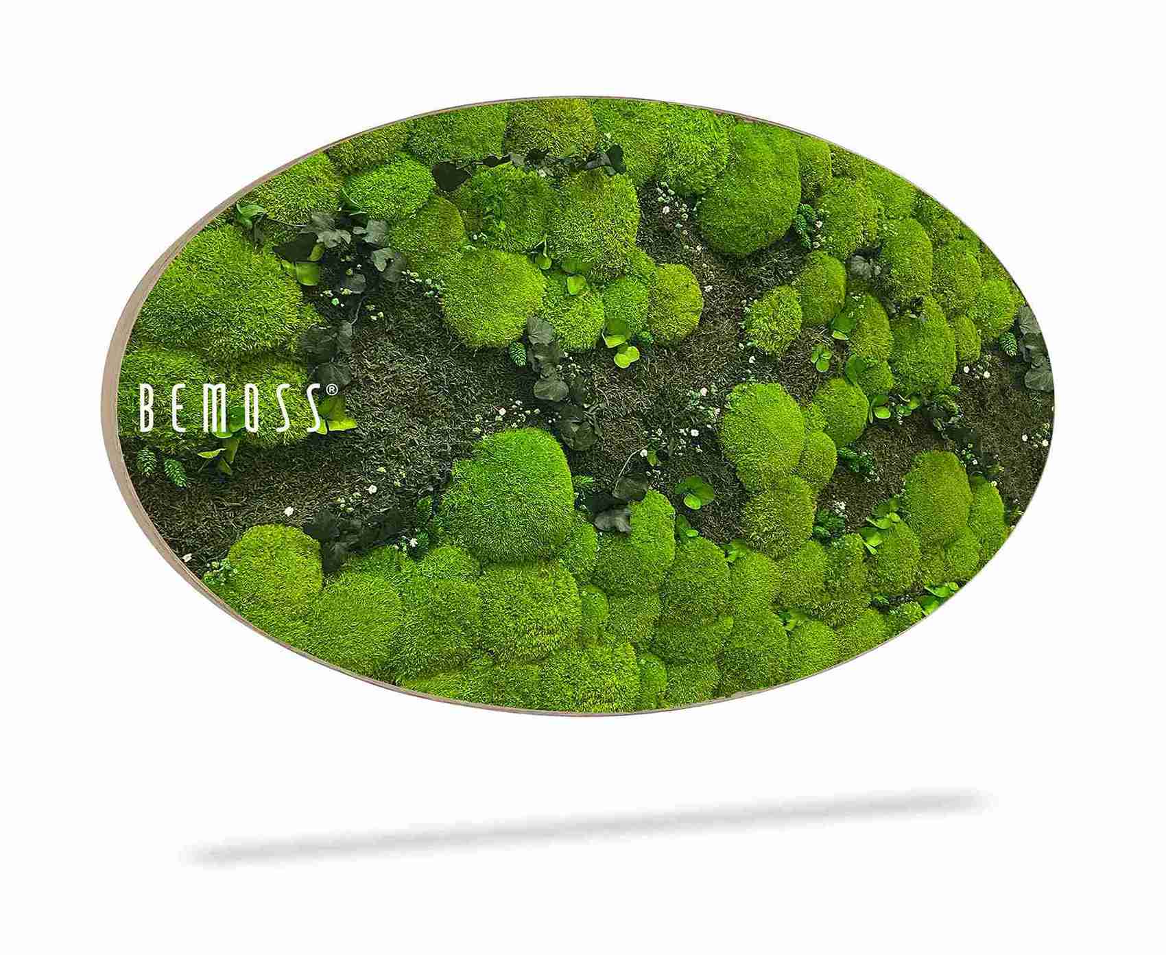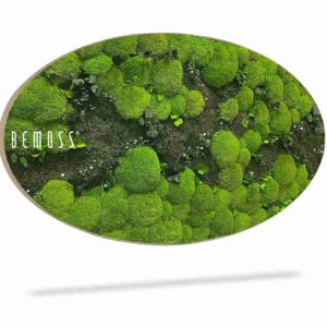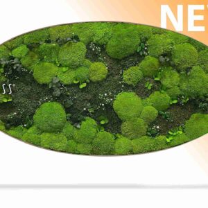 Moosbild Ellipse PFLANZEN Kyrin zeichnet sich durch die harmonische Verbindung aus verschiedenen Moosarten und feinen pflanzlichen Elementen aus. Die Kombination aus satten Grüntönen und zarten Details verleiht dem Bild eine natürliche Tiefe und Lebendigkeit. Gefertigt aus 100% natürlichen stabilisierten Materialien, ist es pflegefrei und handgefertigt in Deutschland.