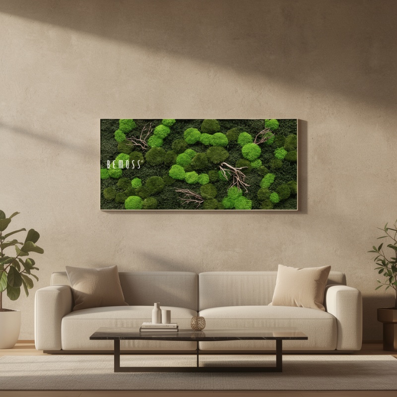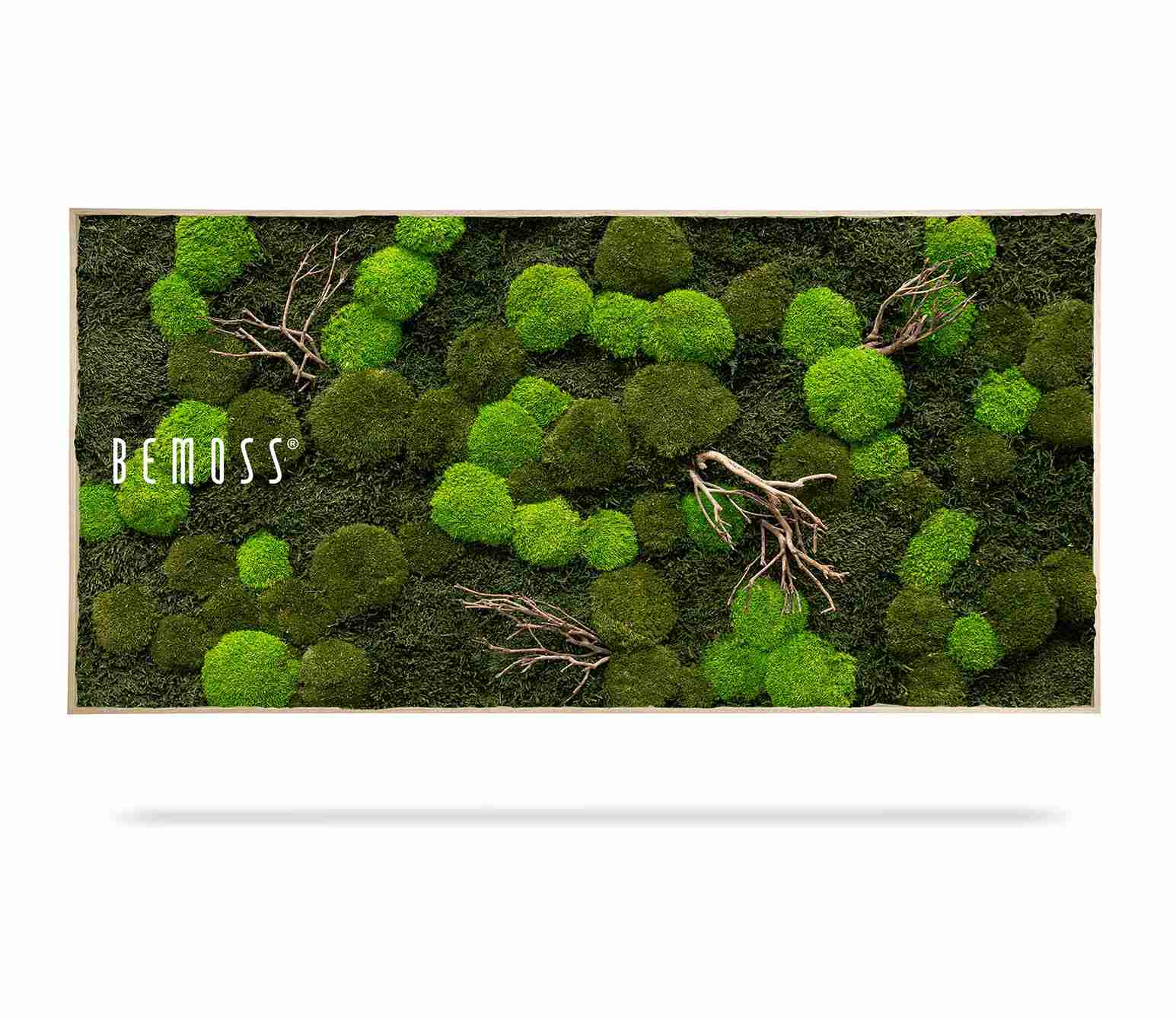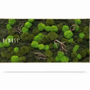 Moosbild FLACHMOOS & KUGELMOOS Doven WOOD kombiniert Flachmoos, Kugelmoos und natürliche Holzelemente zu einer ausdrucksstarken Wanddekoration. Die feinen Äste setzen besondere Akzente und verleihen dem Bild eine organische Tiefe. Gefertigt aus 100% natürlichen stabilisierten Materialien, ist es pflegefrei und handgefertigt in Deutschland.