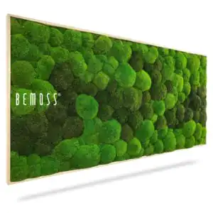 Alle Produkte von BEMOSS® werden handgefertigt in Deutschland. Moosbilder und Mooswände bestehen aus 100 % natürlichem Material, das durch ein spezielles Verfahren in einer Stabilisierungslösung konserviert wurde. Dadurch sind alle Moosbilder, Mooswände und stabilisierten Pflanzen pflegefrei – sie benötigen weder Tageslicht noch Wasser zum Erhalt. Die Lebensdauer der Moosbilder und -wände von BEMOSS® beträgt mehrere Jahre. Um diese möglichst lange zu bewahren, ist Folgendes entscheidend: