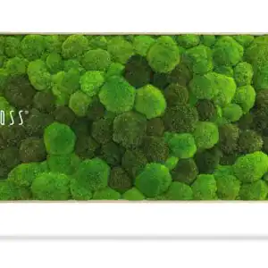 → Unsere Moosprodukte können mit Holz- oder Aluminiumrahmen in verschiedenen Designs oder auch rahmenlos geliefert werden. Die Bilder werden auf der Rückseite mit vormontierten Haken zum Aufhängen ausgestattet.