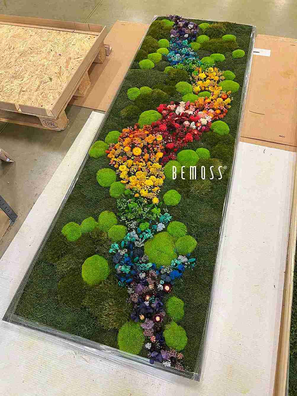 Alle Produkte von BEMOSS® werden handgefertigt in Deutschland. Moosbilder und Mooswände bestehen aus 100 % natürlichem Material, das durch ein spezielles Verfahren in einer Stabilisierungslösung konserviert wurde. Dadurch sind alle Moosbilder, Mooswände und stabilisierten Pflanzen pflegefrei – sie benötigen weder Tageslicht noch Wasser zum Erhalt. Die Lebensdauer der Moosbilder und -wände von BEMOSS® beträgt mehrere Jahre. Um diese möglichst lange zu bewahren, ist Folgendes entscheidend: