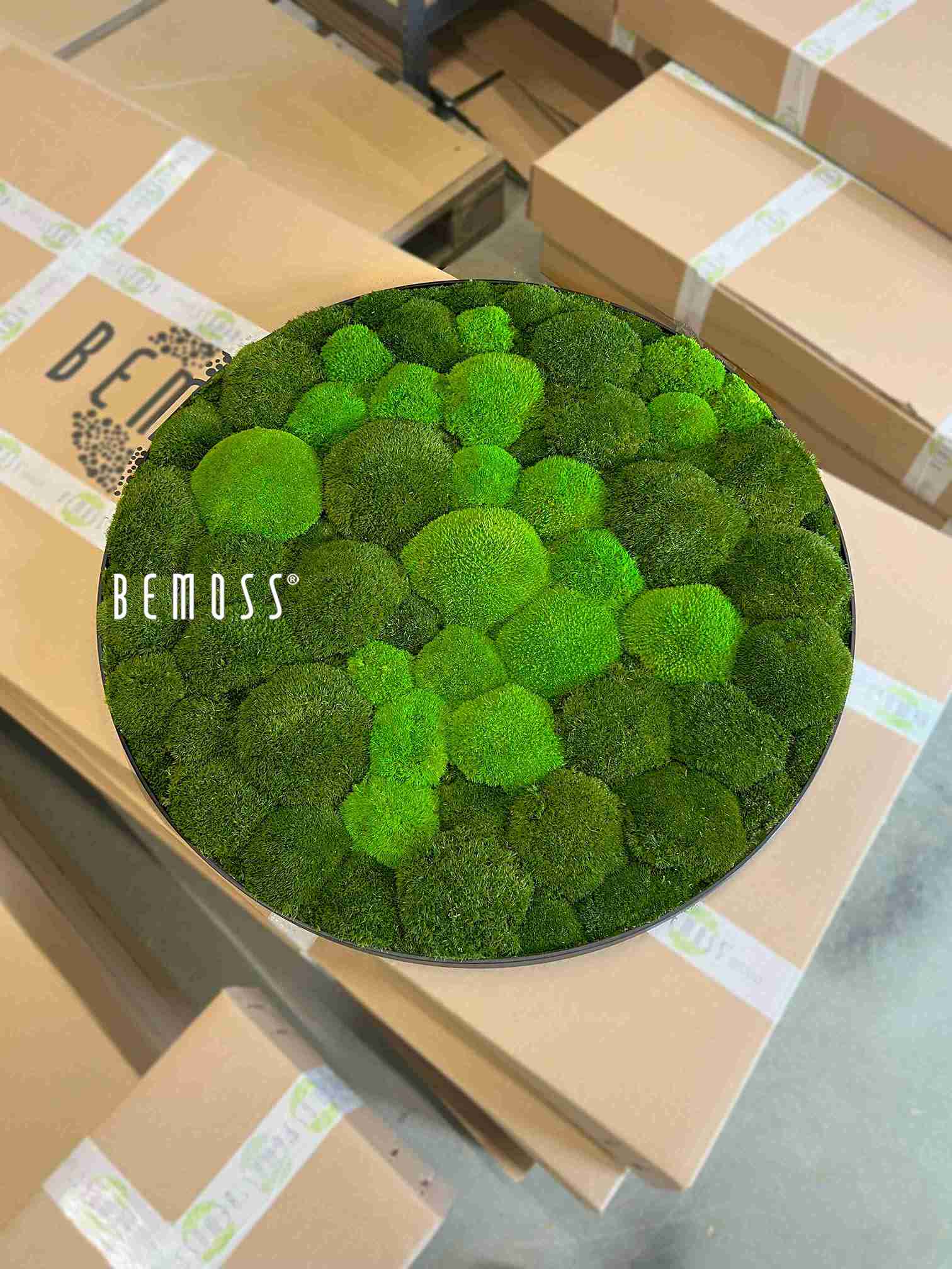 Das Moosbild Rund KUGELMOOS DUO Natural Green ist in Standardgrößen erhältlich, kann aber auch individuell nach Ihren Wünschen angefertigt werden. Dieses wunderschöne Naturbild passt sich perfekt jedem Raum an und wird garantiert zum Blickfang in Ihrem Interieur.