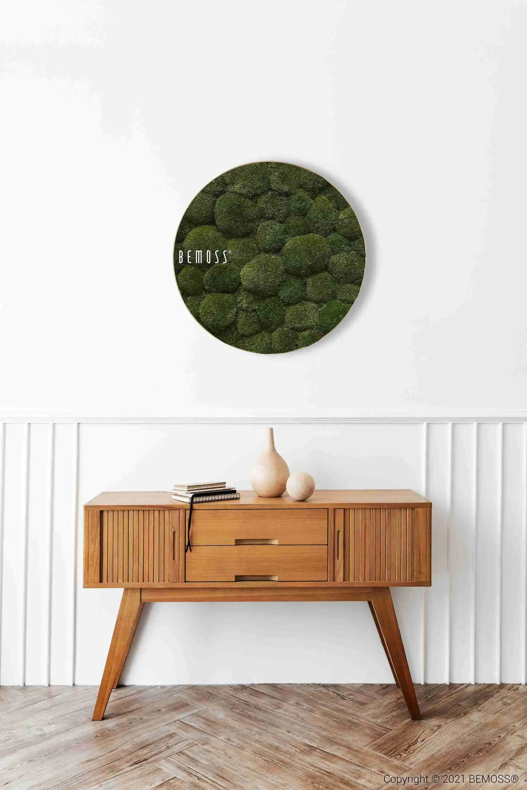 Alle Produkte von BEMOSS® werden handgefertigt in Deutschland. Moosbilder und Mooswände bestehen aus 100 % natürlichem Material, das durch ein spezielles Verfahren in einer Stabilisierungslösung konserviert wurde. Dadurch sind alle Moosbilder, Mooswände und stabilisierten Pflanzen pflegefrei – sie benötigen weder Tageslicht noch Wasser zum Erhalt. Die Lebensdauer der Moosbilder und -wände von BEMOSS® beträgt mehrere Jahre. Um diese möglichst lange zu bewahren, ist Folgendes entscheidend:
