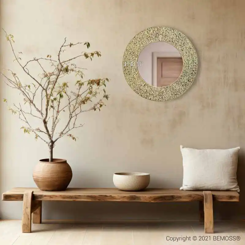 Ein runder Moos-Spiegel wie dieses Modell bringt nicht nur Tiefe und Licht in den Raum, sondern auch ein echtes Stück Natur, das gleichzeitig modern und funktional ist.